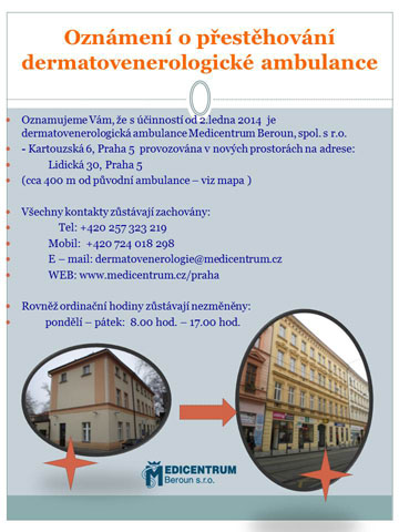 Abyste si vybrali tu první správnou variantu, Vám ze srdce přeje a vyšetření v naší venerologické ambulanci Medicentrum s.r.o. Beroun, která od 2. 1. 2014 sídlí na nové adrese, Lidická 30, Praha 5, doporučuje vedoucí lékař venerologické ambulance